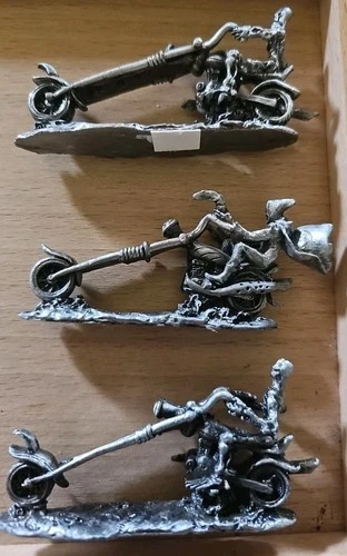 VINTAGE Metal Grim Reaper & Skeleton On Chopper Figurine Paper Weight. (THREE) 3