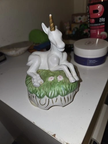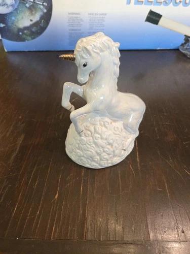 VINTAGE UNICORN FIGURINE Iredescent White Fantasy Figurine 6” Ceramic