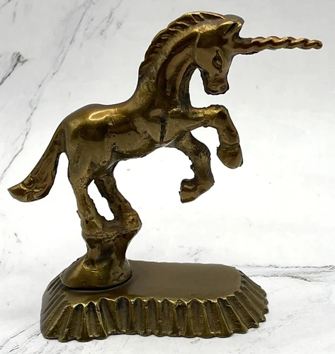 Brass Unicorn Mythical Small Figurine 3.5 Inch Tall Vintage Decor