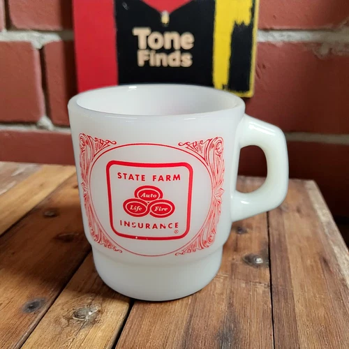 Fire King State Farm Insurance Milk Glass Stackable Coffee Mug or Cup
