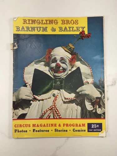 1947 Ringling Bros Barnum & Bailey Circus Magazine Program Vintage Clown Cover