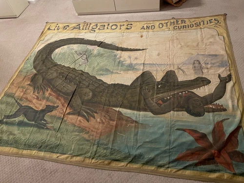 SPECTACULAR TURN OF CENTURY SIDESHOW BANNER LIVE ALLIGATORS & OTHER CURIOSITIES!