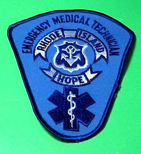 RHODE ISLAND EMT EMERGENCY MEDICAL TECHNICIAN DARK BLUE BACKGROUND 4 3/4" PATCH
