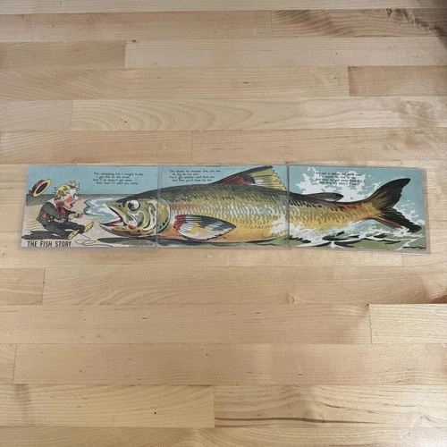 INSTALLMENT POSTCARD PUZZLE SET of 3 ANTIQUE CARDS FISH STORY fishing