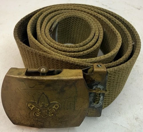 Vintage Boy Scouts Of America Belt Mens 44 Brown Canvas Web Brass Buckle USA