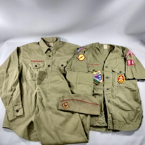 Vtg Boy Scouts of America Uniform Lot Of 4 Long Short Sleeves Shirts Pants Cap