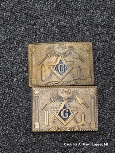 2 Vintage Belt Buckle Masonic (designer Harry Kutzner) 1978 ALL SEEING EYE MASON