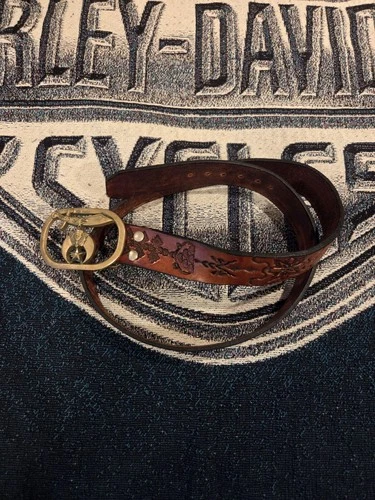 VTG Baron Buckle Solid Brass Shriners Masonic Sword Star With Leather Belt 1980