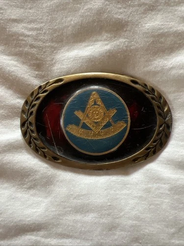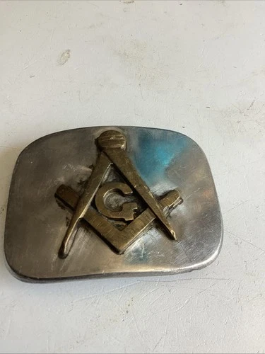 Free Mason Vintage Belt Buckle Masonic Square And Compass Solid Brass