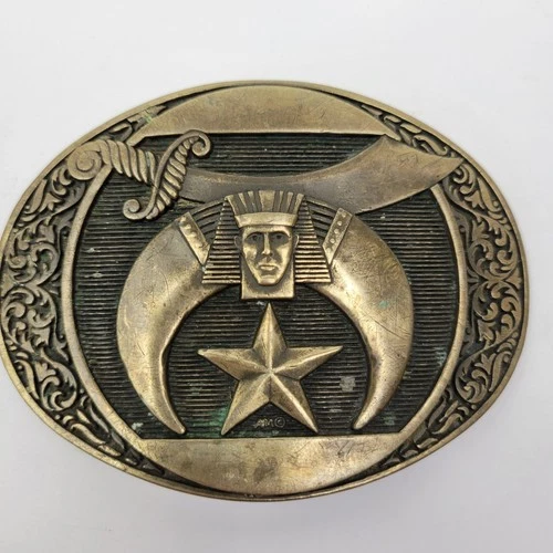 Vintage Masonic Shriners Solid Brass Belt Buckle Award Design Medals Oklahoma