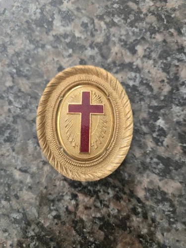Vintage Gold Masonic Knights Templar Belt Buckle with Red Cross Symbol
