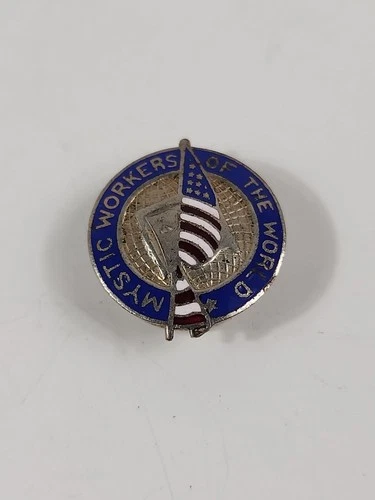 1920's MYSTIC WORKERS OF THE WORLD SERVICE EMPLOYEE PIN BADGE ENAMEL US FLAG