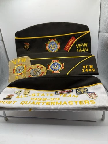 Lot Of 3 VFW Hats (sz 7.5 & 7-3/8) And 11 Various VFW Pins