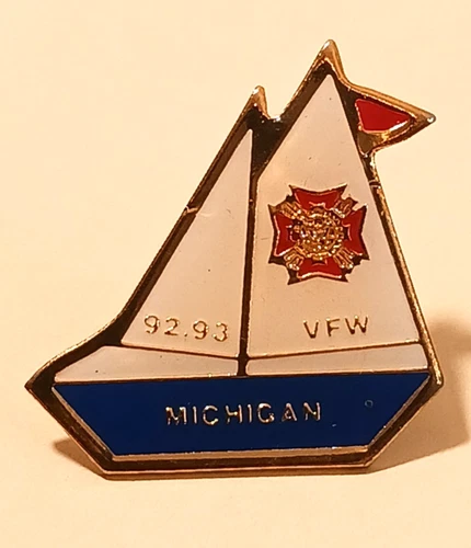 Vtg VFW Michigan 1992-1993 Sailboat Enamel Lapel Pin Badge Vet of Foreign Wars