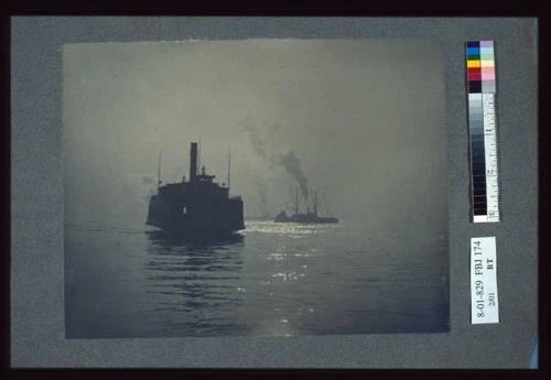 Ferry crossing a smooth body of water with other ships in backgrou- Old Photo 1