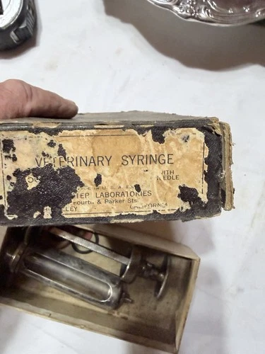 Vintage Cutter Laboratories Veterinary Syringe Glass Barrel Berkeley CA w Box