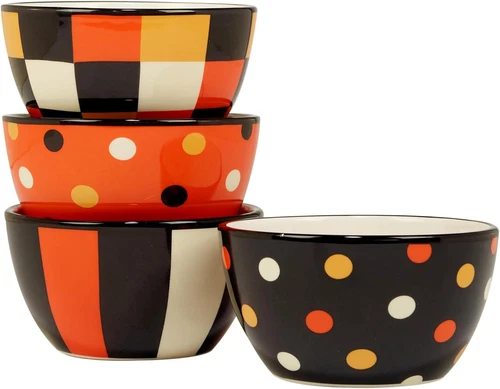 Spooky Halloween Ice Cream & Dessert Bowls – Set of 4 Ceramic 5.5" Bowls with Fu