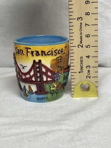 SNCO San Francisco Embossed Painted Souvenir Shot Glass Ceramic & Porcelain