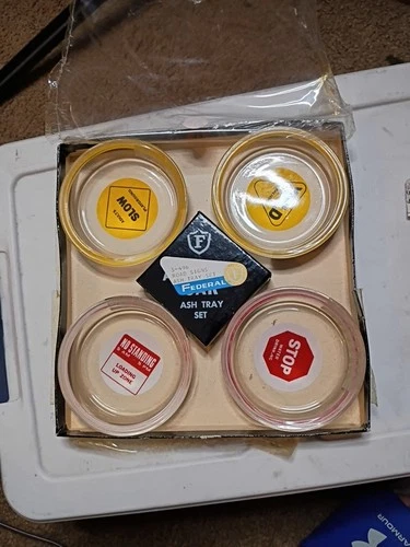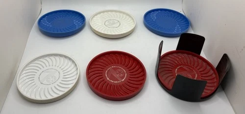 Vtg RITEPOINT USA MCM Coaster Set~Nat. Semi-Conductor ~6 Retro Plastic W/Holder