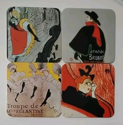 Vtg Henri Toulouse Lautrec Coasters Felt Back Set Of Four