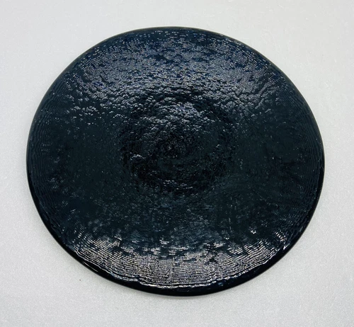 Rare 1970s Black Crystal Glass Large Coaster Pot Pan 6.5” Roubd Art Decor B2
