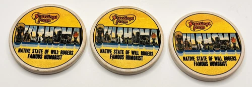 Vintage Ceramic Route 66 Coasters Greetings From Oklahoma X3