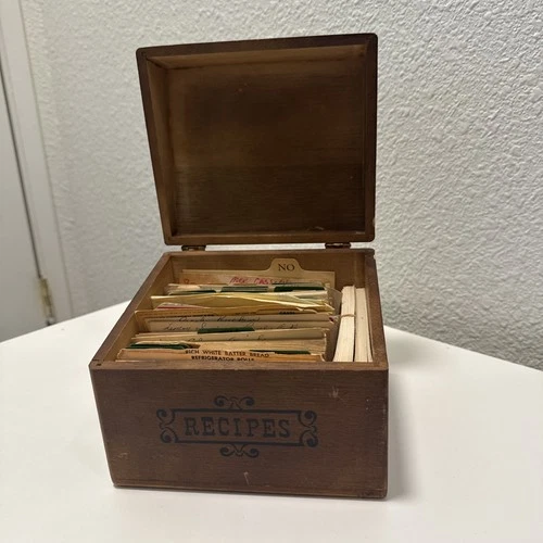 Wooden Vintage Recipe Box w/lots Of Cards Handwritten , Typed & Blank