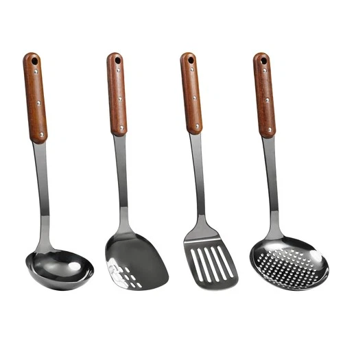 FJNATINH Silicone Wok Spatula,Turner,Ladle,Skimmer Set,Wok 15.74", Black