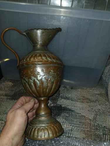 Large 13” Tall English Renaissance Style Brass or Copper Pitcher Jug Serve ware
