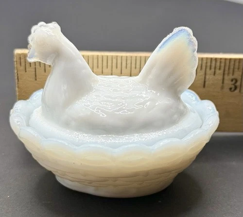 Vintage Westmoreland White Milk Glass Hen on Nest Open Salt 3"