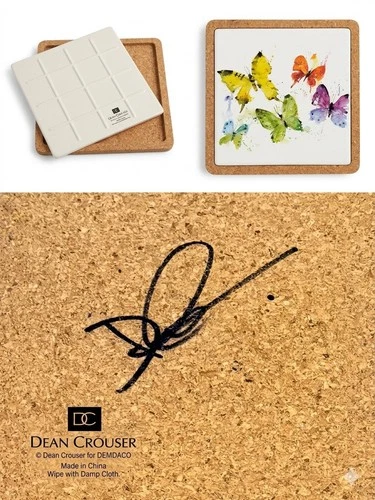 DEAN CROUSER Signed DEMDACO Butterfly Watercolor Stoneware Trivet Tile - RARE