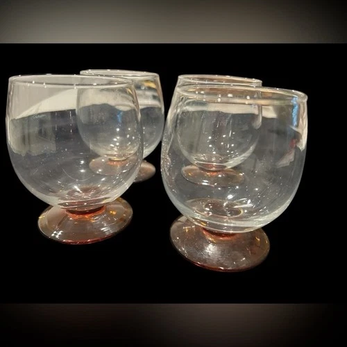 Set of 4 Vintage Clear Drinking Glasses with Amber Footed Base