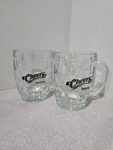 Cheers Bar Boston Beer Stein Mug Luminarc USA Pint Glass 5" tall 16 oz Set Of 2