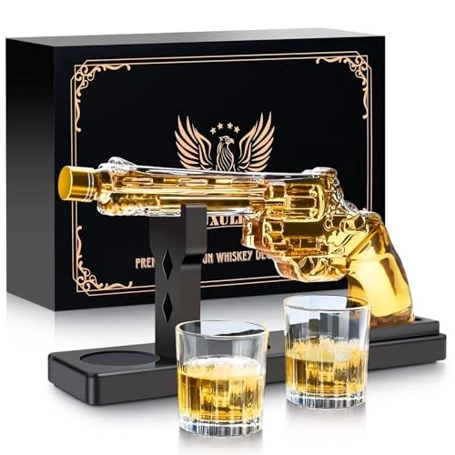 LUXULISH Whiskey Gun Decanter Set with 2 Shot Glasses, Liquor Dispenser for
