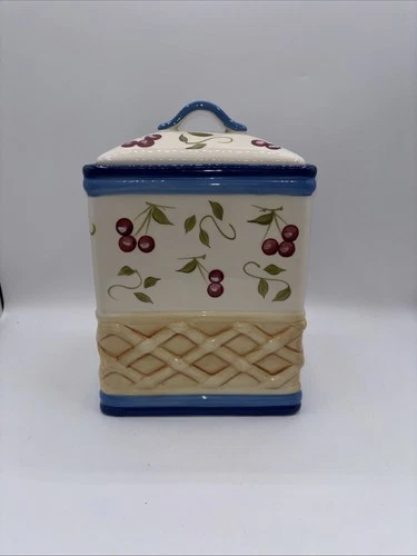 INSPIRADO Seattle StoneLite Clay Large Cookie Jar Canister Hand Painted Cherries