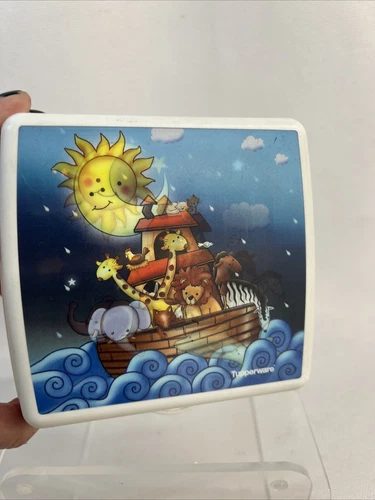VTG Tupperware Noah's Ark Sandwich Keeper Hologram Design Square Travel 3752A-3