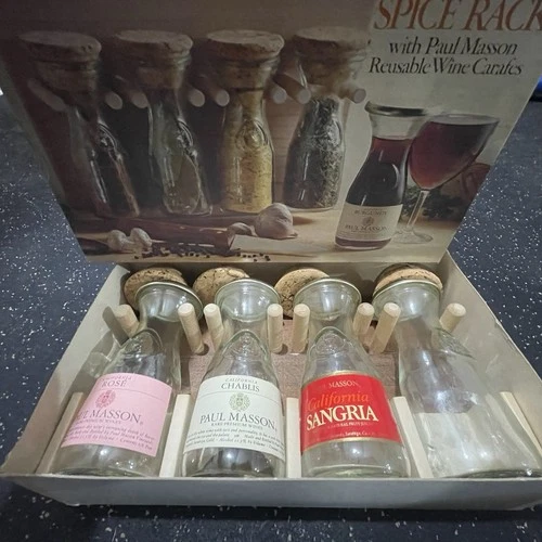 Paul Masson Spice Rack with 4 Reusable Wine Carafe Jars Set