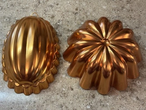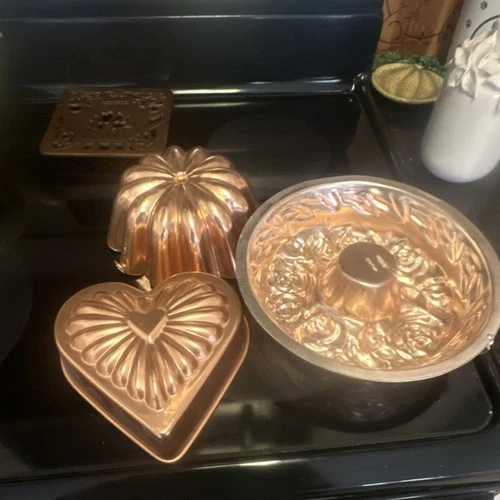 Copper Metal Jello Mold Set of 3 - Heart, Floral, Scalloped Shapes