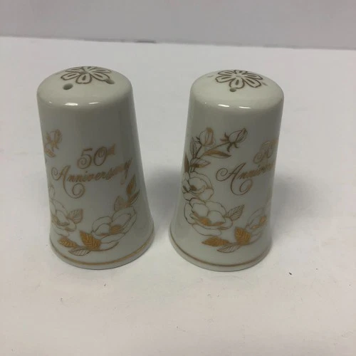 Vintage Norcrest Salt & Pepper Shakers 50th Anniversary Roses Gold White JAPAN
