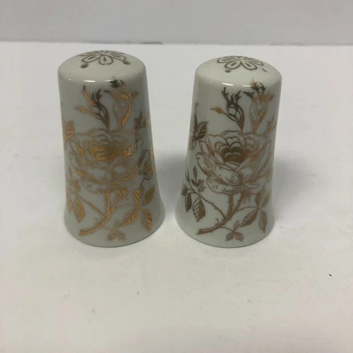 VTG Norcrest Salt & Pepper Shakers 50th Anniversary Roses Gold on White JAPAN