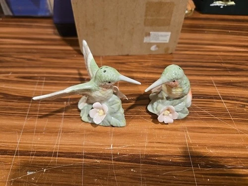 Vintage Ceramic Pale Green Humming Bird Salt & Pepper Shakers
