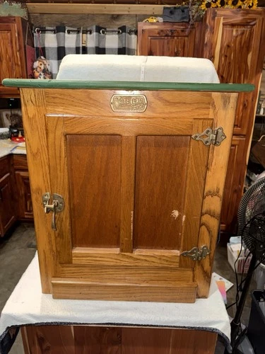 Vintage White Clad Oak Wood Ice Box Nightstand Cabinet Chest End Table G28