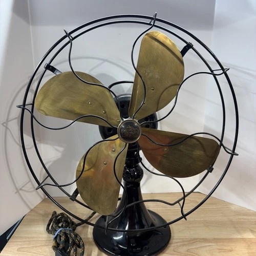 Antique Emerson Fan 4 Blade Brass Blade 16 Inch 73648 3-speed Oscillating WORKS