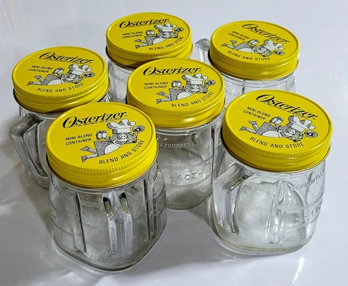 Lot of 6 VTG Osterizer Mini Blend Containers Plastic With Metal Lids 8 oz Each