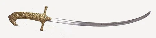 ANTIQUE ISLAMIC SHAMSHIR SWORD - CAST BRASS HILT - 25" LONG BLADE - VG COND.