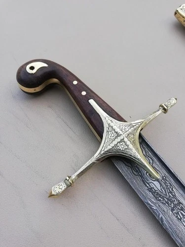 Handmade Ottoman Kilij Sword Damascus Steel 38" Curved Saber w/ Leather Sheath
