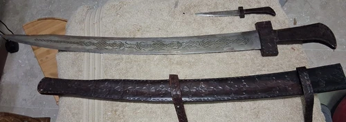 ANTIQUE ISLAMIC ARABIC OTTOMAN EMPIRE TURKEY TURKISH YATAGAN SWORD w/SCABBARD