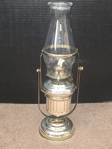 Vintage Silver-Plated Hurricane Oil Lamp with Swivel Handle & Glass Chimney