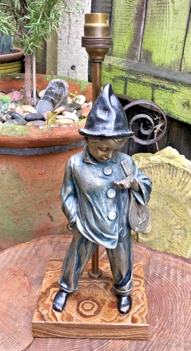 Vintage Art Deco cold painted bronze boy clown figural lamp marble working 1930s