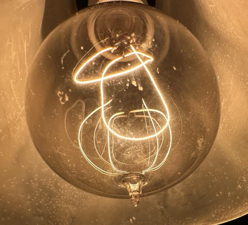 Vintage Antique Carbon Coiled Light Bulb FW, Texas 220V, 120W 3" x 6" Working